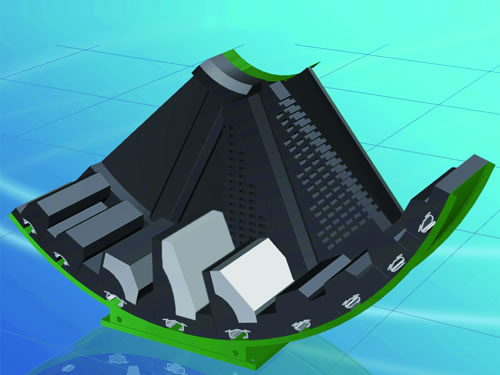 This kind of composite linings is exclusively used in overflow type ball mill in a section of working, grille type ball mill, the head chamber of multi chamber type ball mill, autogenous mill and rod mill.